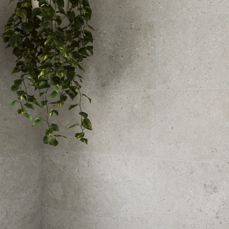 Den matte overflade og den fine stenåring gengiver på autentisk vis følelsen af ægte kalksten med en raffineret råhed, der tilfører dybde og karakter til ethvert rum.