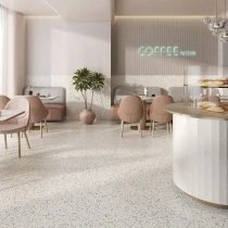 KLPM6618 - Vit 60x60 Klinker med terrazzo textur och matt yta. Frostsäker och tål golvvärme är egenskaper för denna klinker, vilket gör att den lämpar sig i alla utrymme, till exempel: badrum, kök, hall. Tessera är kvalitets klinker från Hill Ceramic®, alla produkter är tillverkarede i EU och uppfyller svensk byggstandard för kakel och klinker. Mer produktspecifikation för Klinker Tessera Terrakotta Matt 60x60 cm hittar ni i informationsfältet på denna sida