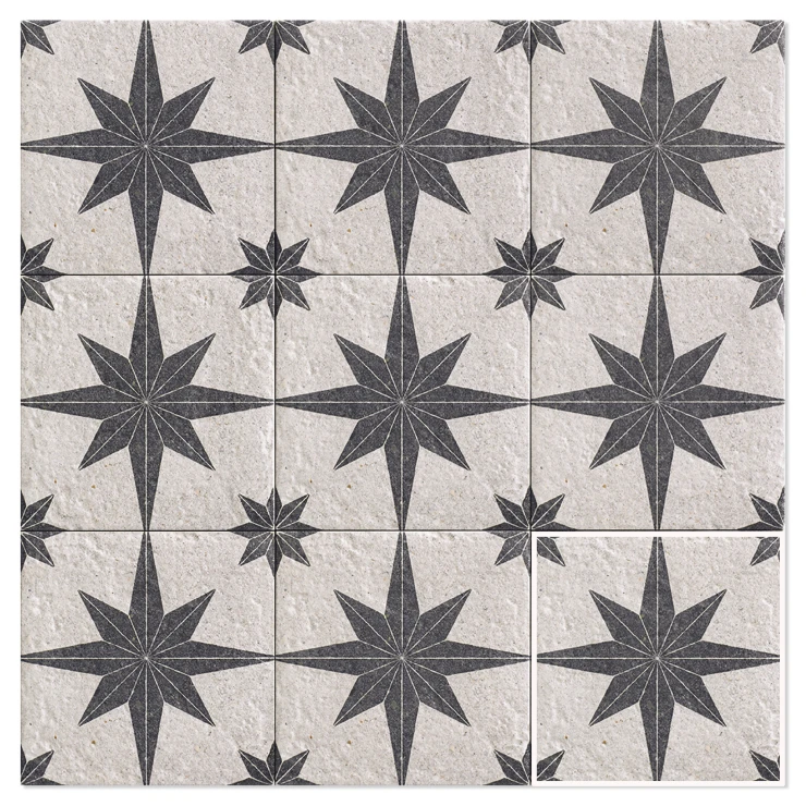 Kollektionen omfatter både basisfliser og matchende mønstrede fliser, som giver stor designfrihed. De dekorative Compass-fliser kan desuden kombineres med basisfliser fra Stanza-kollektionen, hvilket åbner op for endnu flere kreative løsninger til gulve og vægge.