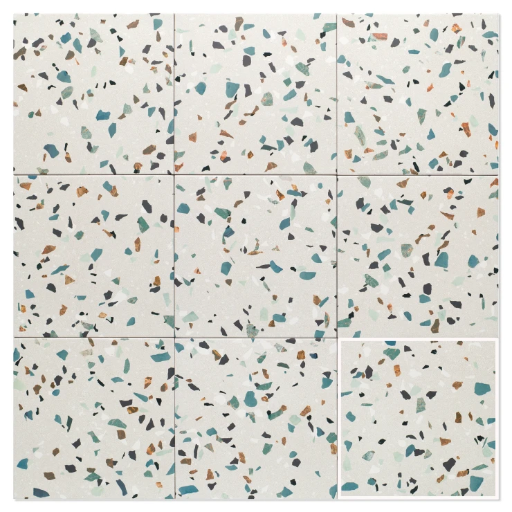 Kollektionen er fremstillet i slidstærk granitkeramik og består af mønstrede fliser i formatet 20x20 cm. Den særlige matte overflade med let glans giver et elegant lysspil og et moderne, indbydende udtryk.