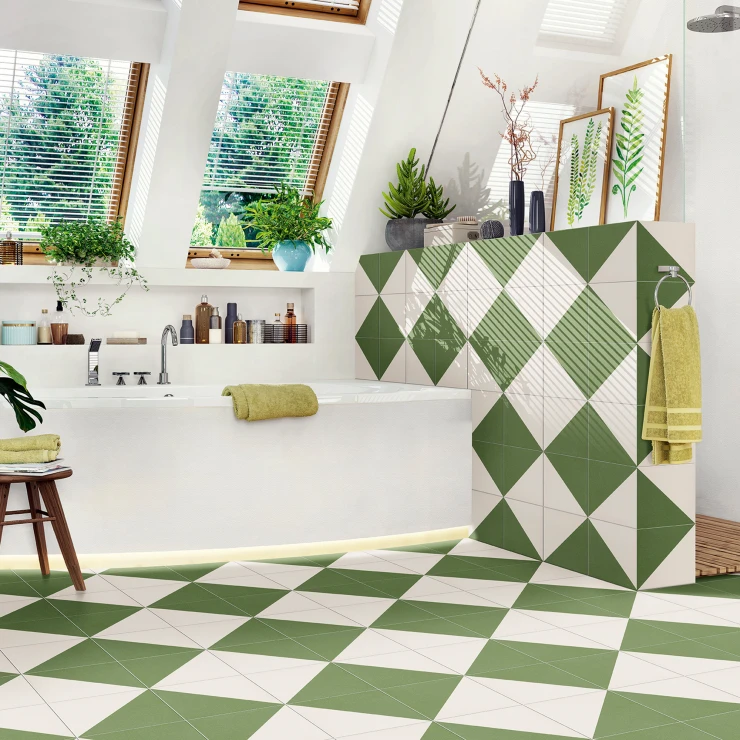 Fired er det oplagte valg for dem, der søger geometriske porcelænsfliser med kreativ fleksibilitet, visuel balance og langvarig holdbarhed.