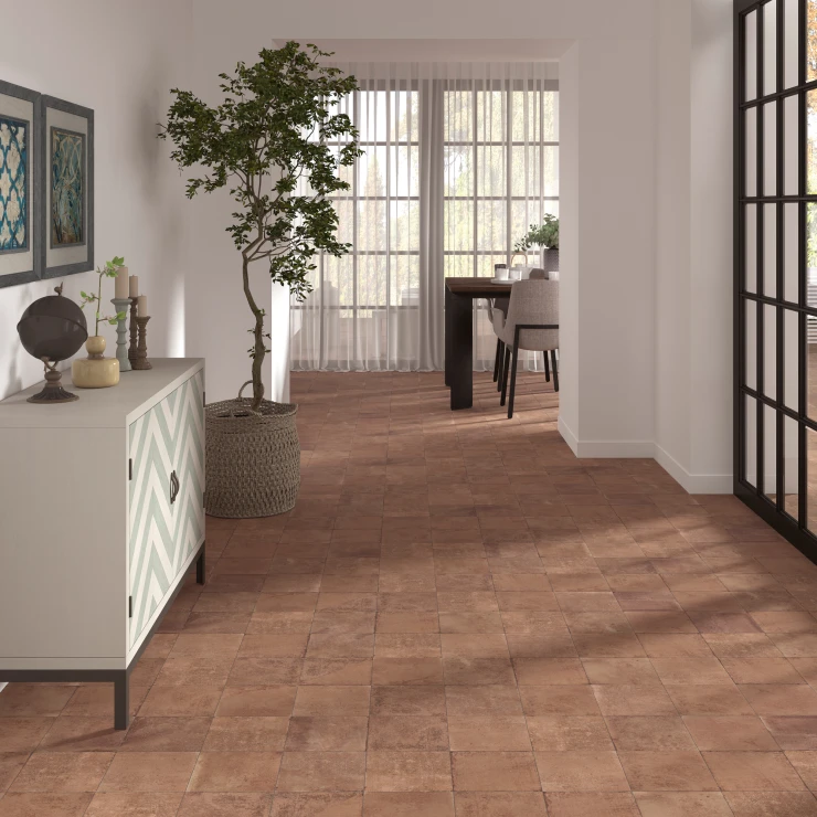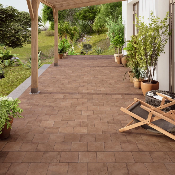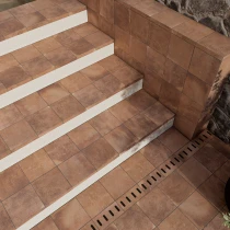 Kollektionen er fremstillet i højtydende granitkeramik og består af terracotta-inspirerede basisfliser samt matchende mønstrede fliser. Den naturlige farvevariation og den matte, strukturerede overflade giver et autentisk og jordnært udtryk - ideelt til både moderne og klassiske uderum.