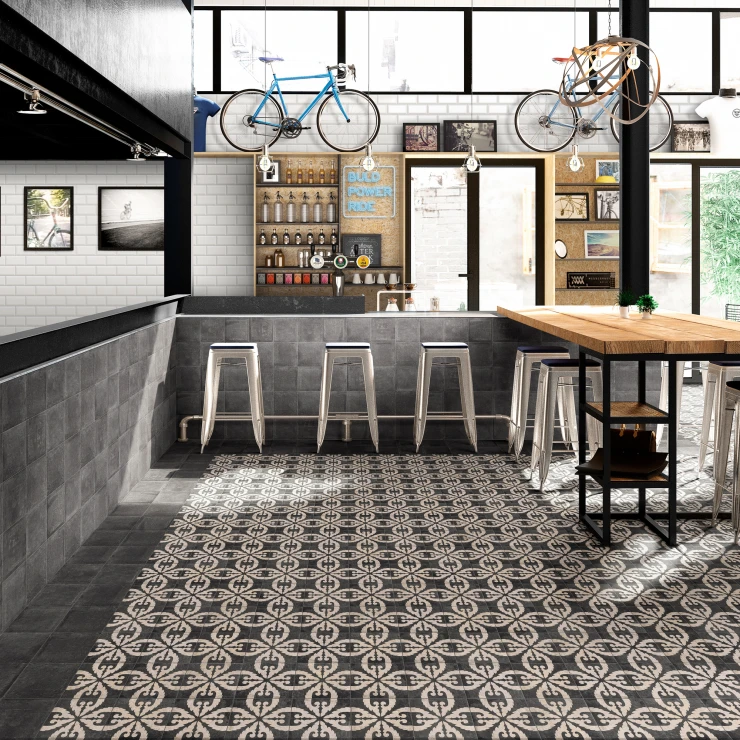 Norland er fremstillet i slidstærk granitkeramik og består af både basisfliser og matchende mønstrede fliser med en elegant mat overflade. Den diskrete cementstruktur og den afdæmpede farvepalette skaber et balanceret og tidløst udtryk, der passer til både moderne og klassiske rum.