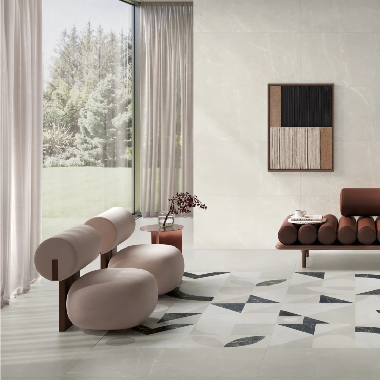 Fliserne kan også kombineres med Flora og Modula-dekorationer for at skabe dekorative og harmoniske overflader. Celesta findes i 60x60 cm, 90x90 cm og 60x120 cm, hvilket gør det nemt at skabe stilfulde rum.