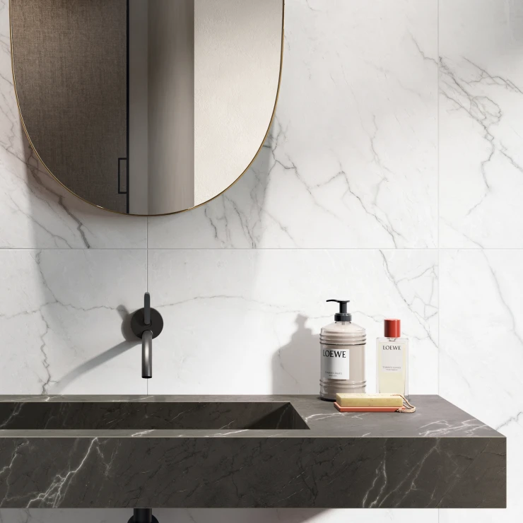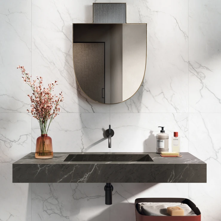 Kollektionen Venata hylder marmorets renhed og elegance. Dens karakteristiske årer er nøje designet for at skabe overflader, der både er unikke og harmoniske, og tilfører subtil sofistikering til ethvert rum.