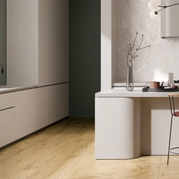 Kollektionen Grainwood bringer varmen og karakteren fra naturligt træ ind i moderne rum. Fås i fire varme trænuancer, og hver planke har levende farver, ultrarealistiske strukturer og en blød mat overflade, som genskaber knuder, fibre og årer på en autentisk måde.