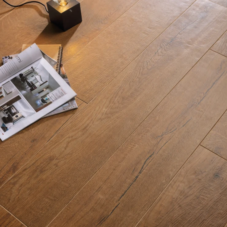 Kollektionen Grainwood bringer varmen og karakteren fra naturligt træ ind i moderne rum. Fås i fire varme trænuancer, og hver planke har levende farver, ultrarealistiske strukturer og en blød mat overflade, som genskaber knuder, fibre og årer på en autentisk måde.