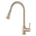Elvar køkkenarmatur kendetegnes ved en konisk tud med en praktisk gummiknap til at skifte mellem to stråletyper – fast stråle til hurtig påfyldning og brusestråle til skånsom skylning, f.eks. af frugt.