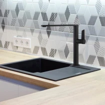Våra köksblandare kombinerar modern design, hög funktionalitet och lång hållbarhet. Sortimentet omfattar modeller med höga svängbara pipar, varianter med utdragbara eller orienterbara duschmunstycken samt professionella lösningar med flexibla slangar och magnetiska återgångssystem. Varje blandare är utrustad med en pålitlig keramisk insats som ger mjuk, exakt och stabil reglering av både temperatur och vattenflöde.