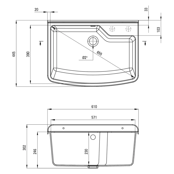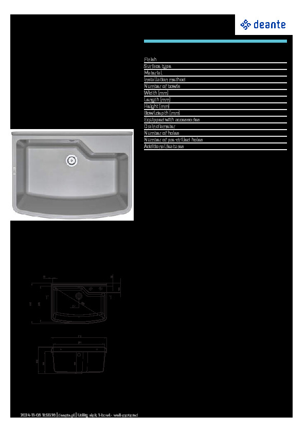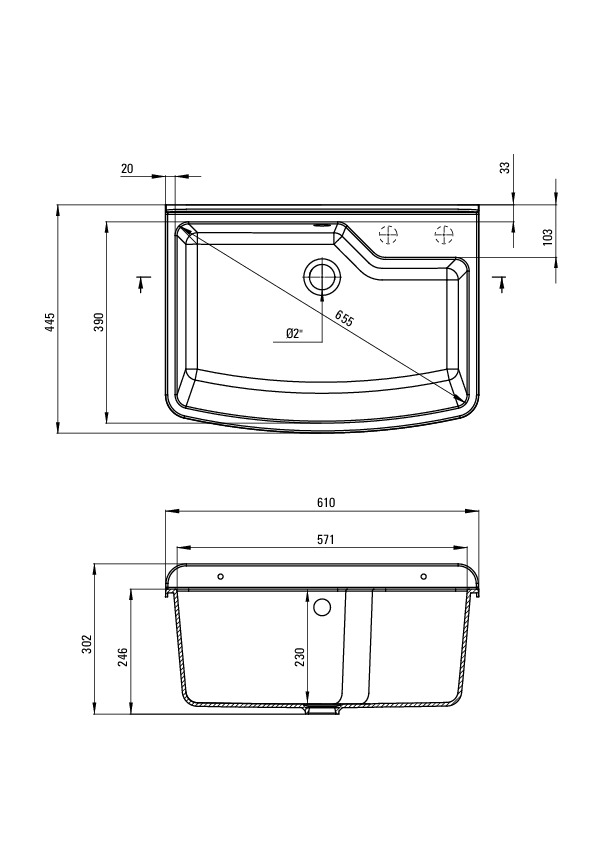 Polystyren Køkkenvask Garden Grå Blank 61x45 cm Vægmonteret