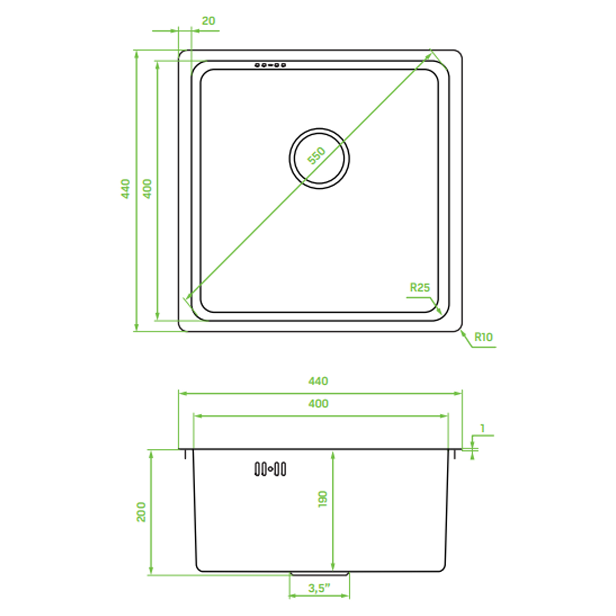 Håndvaskene kan installeres på tre måder: undermount, indfældet eller planmontering (flushmount), så du kan vælge det, der passer bedst til dit køkken. Den lyddæmpede balje reducerer støj ved brug.