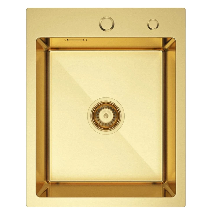 Vask i Rustfrit Stål 40×50 Guld med Vandlås – PVD-Finish
