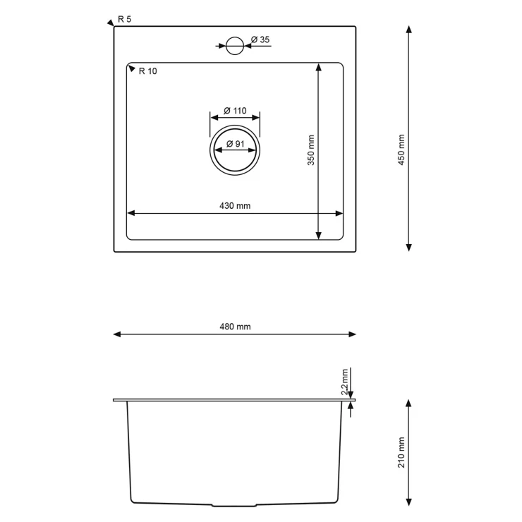 Diskhon i rostfritt stål 48×45 Inox kombinerar hållbarhet, elegans och praktisk funktionalitet. Med måtten 48×45 cm och ett djup på 210 mm erbjuder den en rymlig ho som enkelt rymmer även större kastruller och köksredskap.