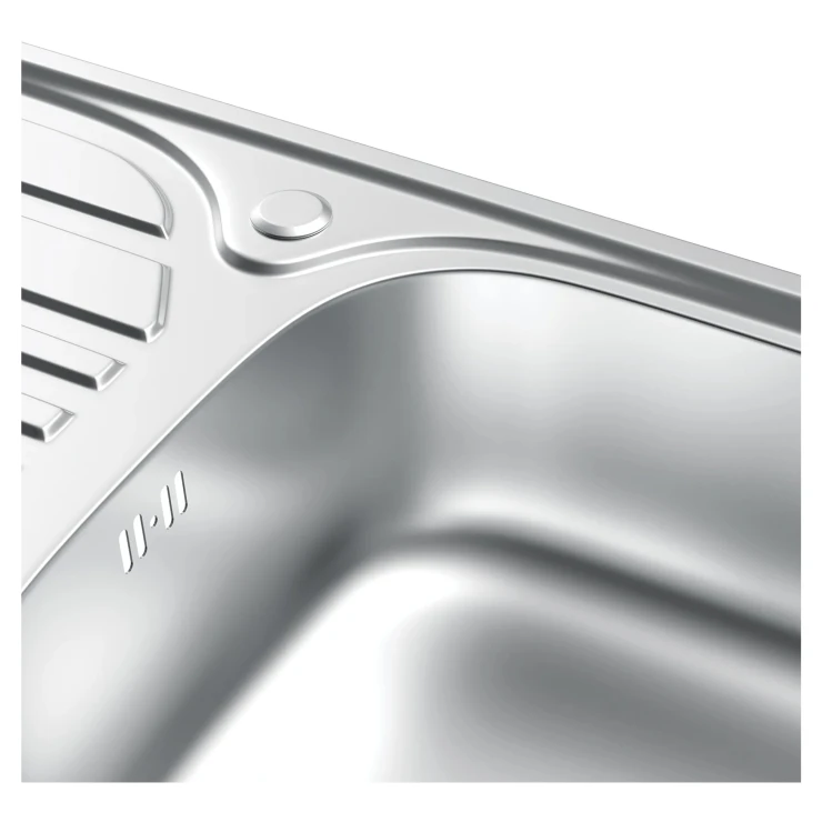 Den enkelskåliga diskhon i rostfritt stål Satin 76×43 är ett perfekt val. Med sin rymliga design och satinyta kombinerar den funktionalitet med modern estetik. Den passar sömlöst i de flesta bänkskivelösningar och erbjuder pålitlig prestanda för alla vardagliga köksuppgifter.