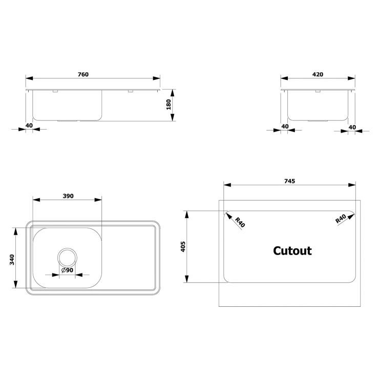 Rostfritt Stål Diskbänk Steelora Krom Blank 76x18 cm med Vattenlås