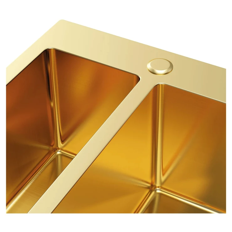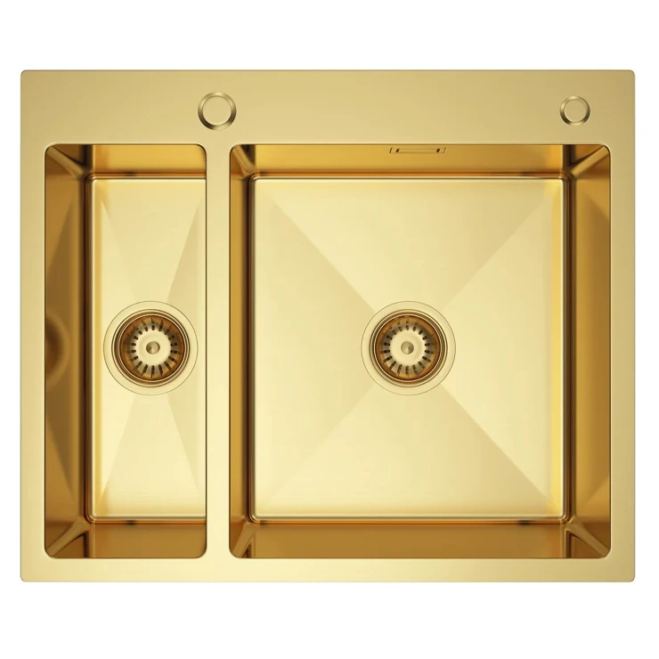 Perfekt för det moderna köket! Denna diskho i guld PVD kombinerar elegant design, hållbarhet och funktionalitet. Med måtten 61×51 cm och ett djup på 210 mm erbjuder den rymliga hoar som enkelt klarar även stora kastruller och köksredskap.