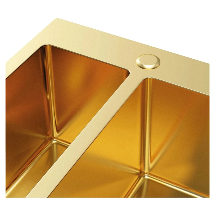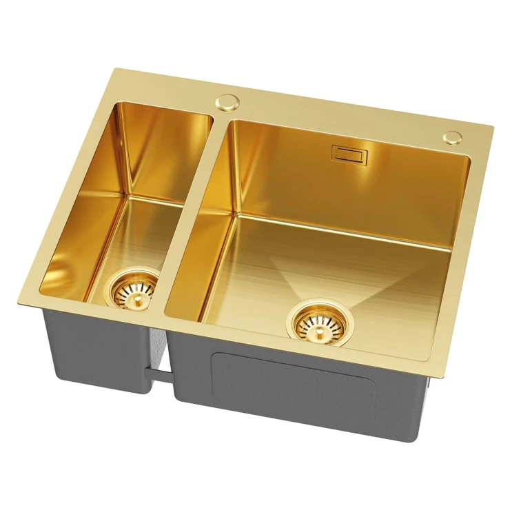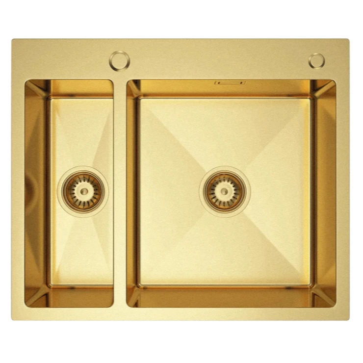 Vask i Rustfrit Stål 61×51 Guld PVD – En og en Halv Vask med Vandlås