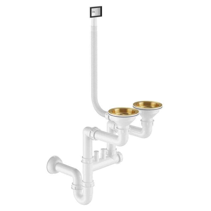 Pladsbesparende vægmonteret vandlås med opvaskemaskinetilslutning
