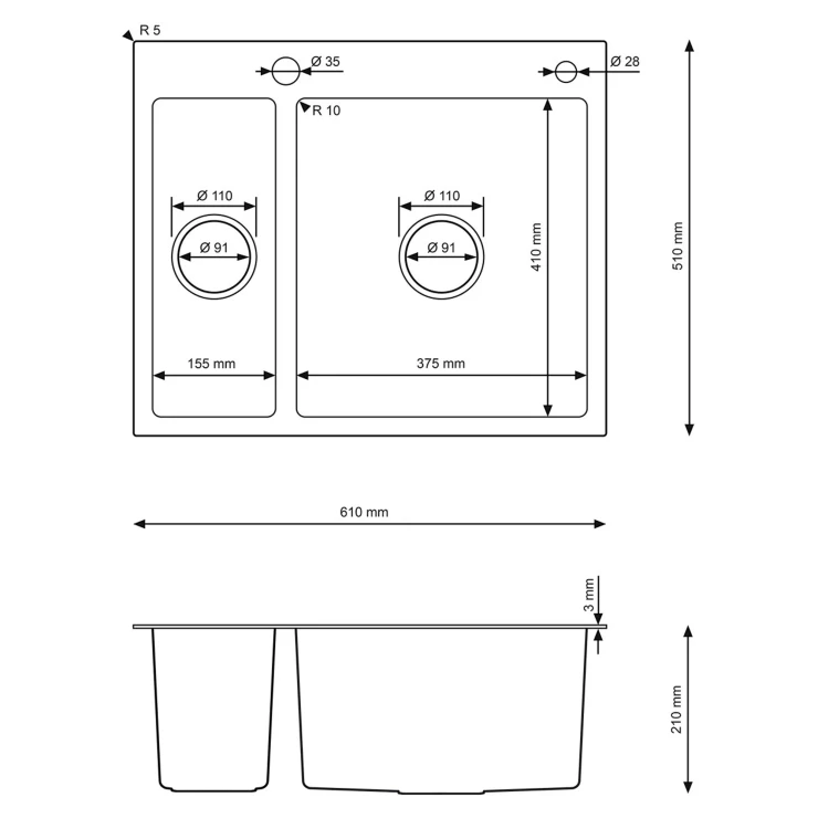 Perfekt til det moderne køkken! Denne vask i guld PVD kombinerer elegant design, holdbarhed og funktionalitet. Med målene 61×51 cm og en dybde på 210 mm tilbyder den rummelige vaske, der nemt klarer selv store gryder og køkkenredskaber.