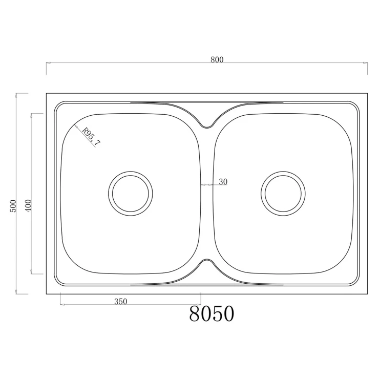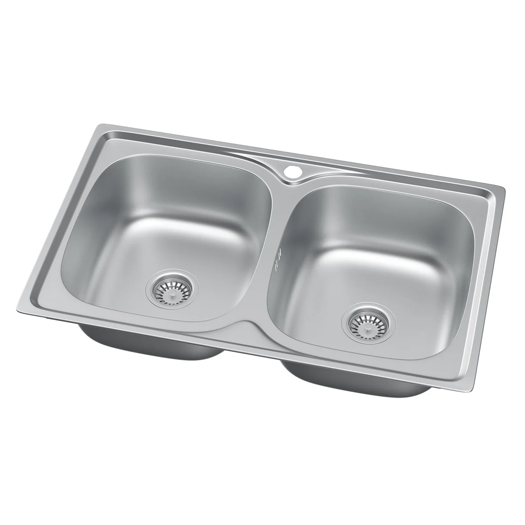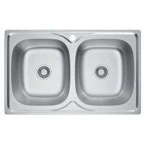 Dubbel Diskho i Rostfritt Stål 80×50 med Microdecor-Finish + Avloppskit