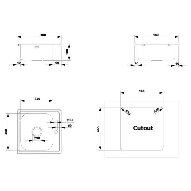 Rustfrit Stål Køkkenvask Steelora Krom Blank 48x18 cm med Vandlås