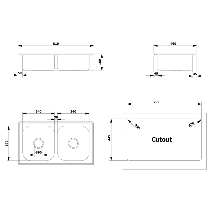 Rustfrit Stål Køkkenvask Steelora Krom Blank 81x18 cm med Vandlås