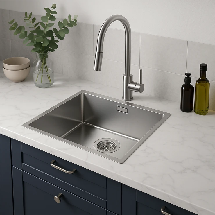 Rustfrit Stål Køkkenvask Valoise Krom Mat 44x44 cm med Vandlås