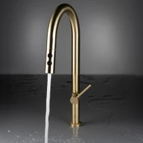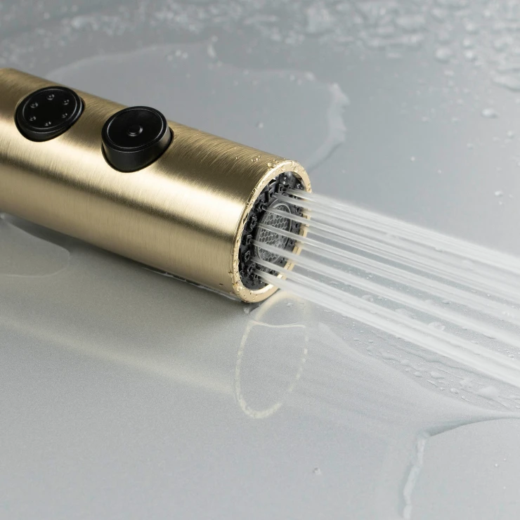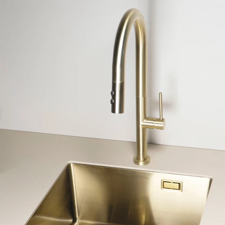 Sæt med stålvask og køkkenarmatur med udtrækkelig spray er en praktisk og stilfuld løsning til det moderne køkken. Vasken i rustfrit stål er slidstærk og let at rengøre, mens armaturet med udtrækkelig tud giver maksimal fleksibilitet ved opvask og skylning. Fås i farverne Børstet stål, Guld, Titanium og Bronze, hvilket gør det nemt at matche med både minimalistiske og eksklusive køkkenmiljøer.