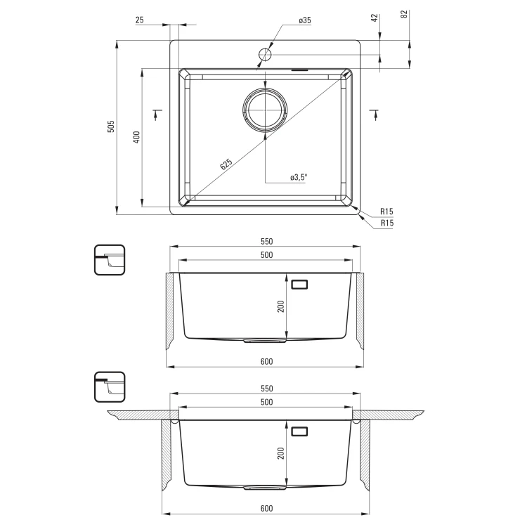 Vasken er udstyret med en moderne "Space Saver"-sifon. Hvis du har været irriteret over bøjninger og rør, der optager det meste af pladsen i dit skab, er dette løsningen til dit køkken. Det specielle og teleskopiske design gør det muligt at tilpasse sifonens form efter dine behov. Takket være dette er det nemt at finde meget mere plads i skabet, for eksempel til hjemmelavede konserver eller affald. Det er også muligt at tilslutte en vaskemaskine eller opvaskemaskine til sifonen. Og vigtigst af alt – du får sifonen i sættet!