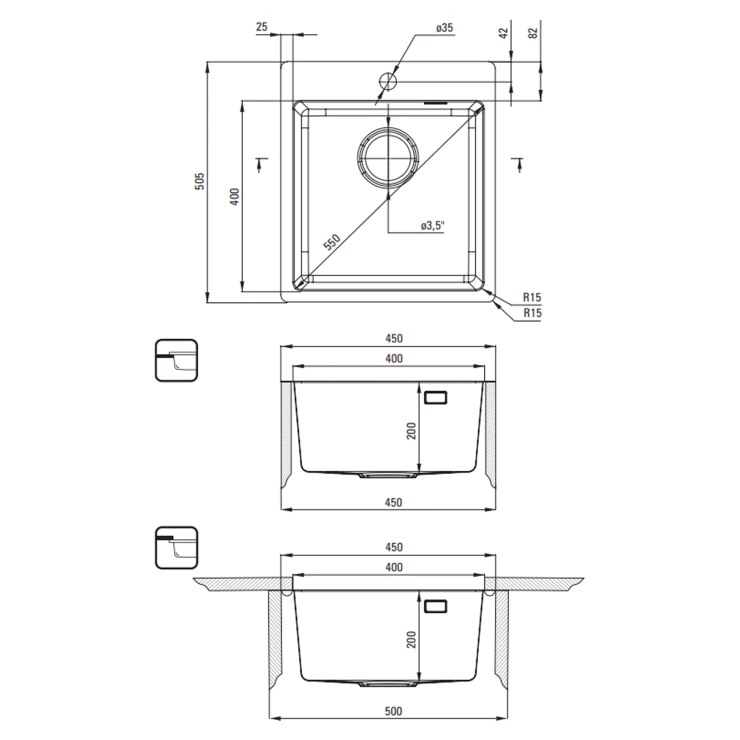 Vasken er udstyret med en moderne "Space Saver"-sifon. Hvis du har været irriteret over bøjninger og rør, der optager det meste af pladsen i dit skab, er dette løsningen til dit køkken. Det specielle og teleskopiske design gør det muligt at tilpasse sifonens form efter dine behov. Takket være dette er det nemt at finde meget mere plads i skabet, for eksempel til hjemmelavede konserver eller affald. Det er også muligt at tilslutte en vaskemaskine eller opvaskemaskine til sifonen. Og vigtigst af alt – du får sifonen i sættet!