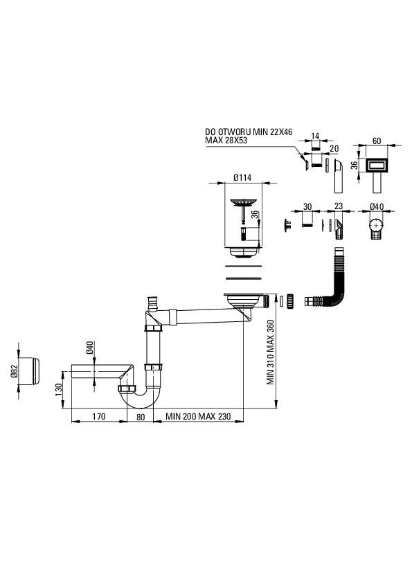 Vasken er udstyret med en moderne "Space Saver"-sifon. Hvis du har været irriteret over bøjninger og rør, der optager det meste af pladsen i dit skab, er dette løsningen til dit køkken. Det specielle og teleskopiske design gør det muligt at tilpasse sifonens form efter dine behov. Takket være dette er det nemt at finde meget mere plads i skabet, for eksempel til hjemmelavede konserver eller affald. Det er også muligt at tilslutte en vaskemaskine eller opvaskemaskine til sifonen. Og vigtigst af alt – du får sifonen i sættet!
