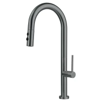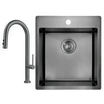 Sæt med stålvask og køkkenarmatur med udtrækkelig spray er en praktisk og stilfuld løsning til det moderne køkken. Vasken i rustfrit stål er slidstærk og let at rengøre, mens armaturet med udtrækkelig tud giver maksimal fleksibilitet ved opvask og skylning. Fås i farverne Børstet stål, Guld, Titanium og Bronze, hvilket gør det nemt at matche med både minimalistiske og eksklusive køkkenmiljøer.