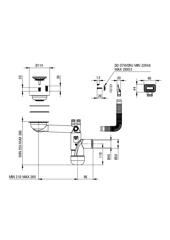 Vasken er udstyret med en moderne "Space Saver"-sifon. Hvis du har været irriteret over bøjninger og rør, der optager det meste af pladsen i dit skab, er dette løsningen til dit køkken. Det specielle og teleskopiske design gør det muligt at tilpasse sifonens form efter dine behov. Takket være dette er det nemt at finde meget mere plads i skabet, for eksempel til hjemmelavede konserver eller affald. Det er også muligt at tilslutte en vaskemaskine eller opvaskemaskine til sifonen. Og vigtigst af alt – du får sifonen i sættet!