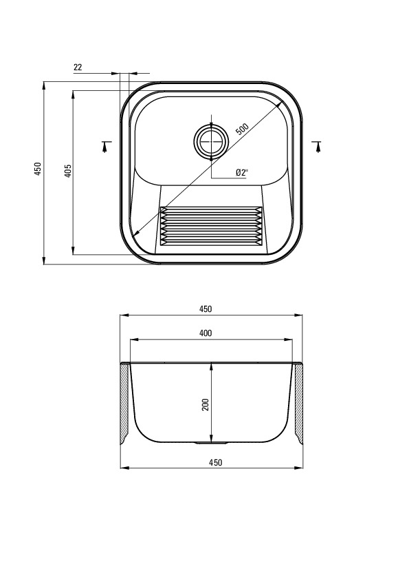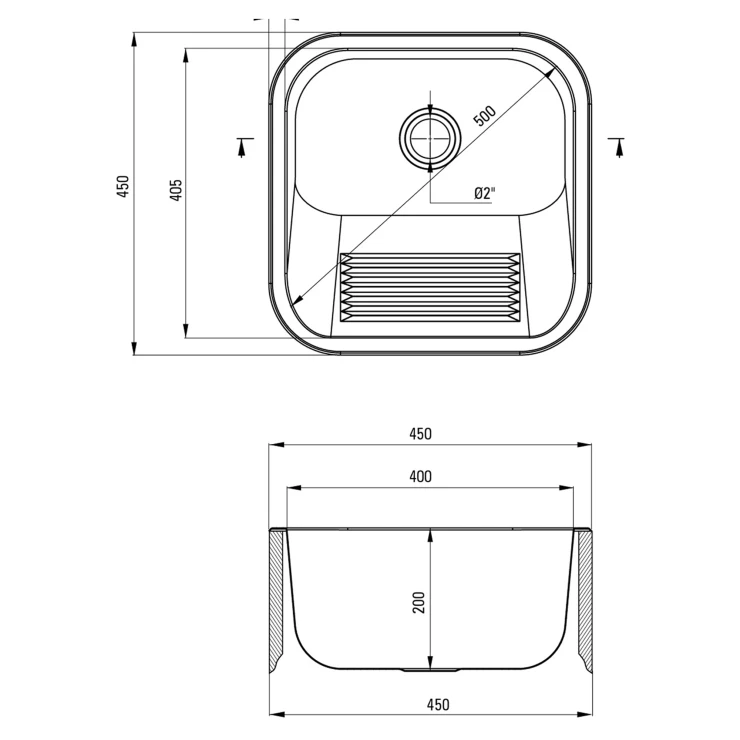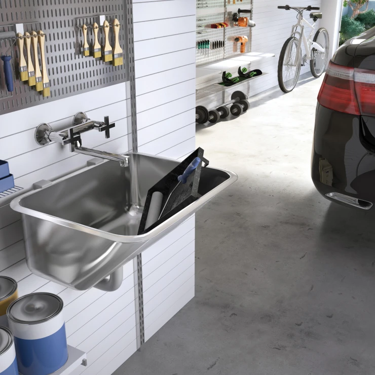 Stål Køkkenvask Utility 45x45 cm Vægmonteret