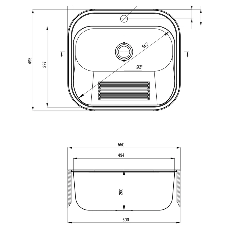 Stål Køkkenvask Utility 55x50 cm Vægmonteret