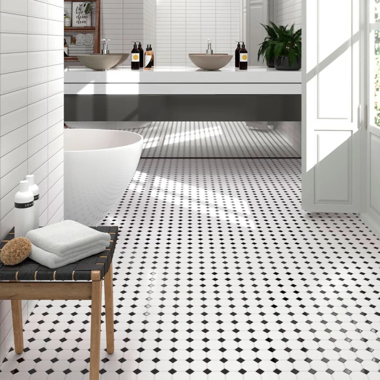 KLD1113 - Vit Mosaik Klinker med mönstrad textur och matt: satin: yta. Frostsäker och tål golvvärme är egenskaper för denna klinker, vilket gör att den lämpar sig i alla utrymme, till exempel: kök, hall, sovrum. Mosaics är kvalitets klinker från Hill Ceramic®, alla produkter är tillverkarede i EU och uppfyller svensk byggstandard för kakel och klinker. Mer produktspecifikation för Dune Klinker Mosaics Oxford Black Satin 30x30 cm hittar ni i informationsfältet på denna sida