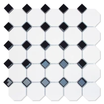 Dune Klinker Mosaics Oxford Black Satin 30x30 cm från serie Mosaics. Klinker Mosaik cm kan användas både till vägg och golv. Mosaics har en matt: satin: yta med en rund kant. Det nominella måttet och annan specifikation på denna platta ni kan hitta i tabellbeskrivning. Denna platta har en mönstrad textur. Sök efter kollektionsnamnet (Mosaics) för att se om det ingår i en serie som kanske erbjuder fler storlekar, samt andra färger. KLD1113 - Vit Mosaik.