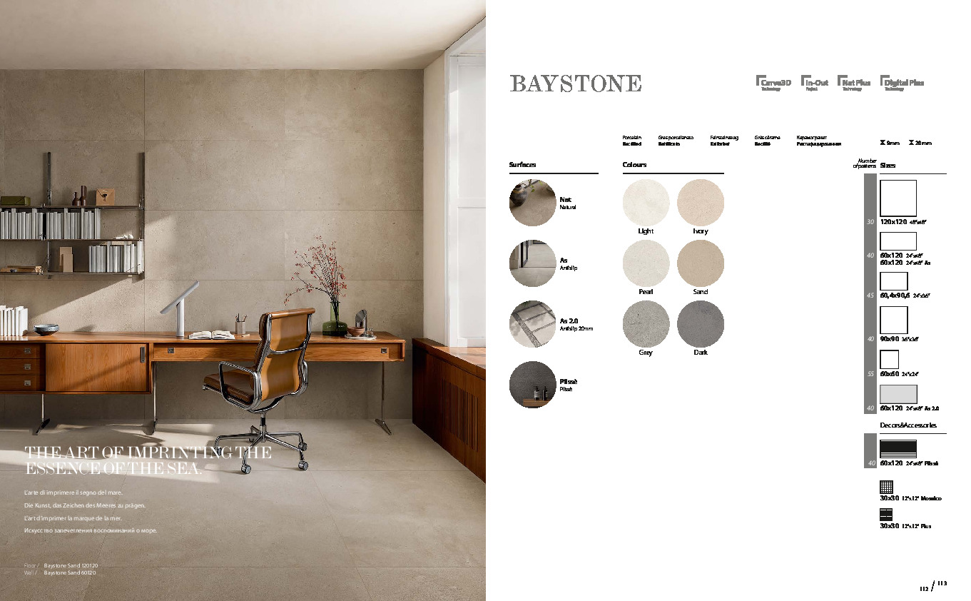 Oplev Baystone – en porcelænsflisekollektion inspireret af kalksten formet af havet. Kollektionen afspejler balancen mellem styrke og blødhed med en naturlig og levende overflade.