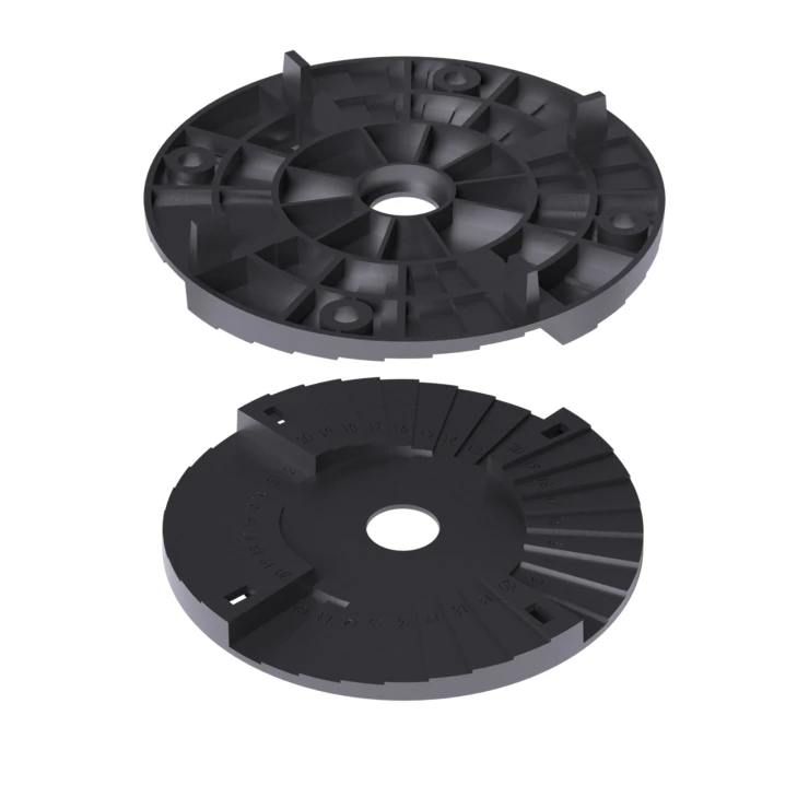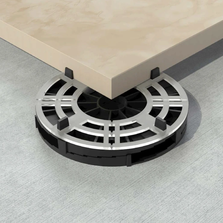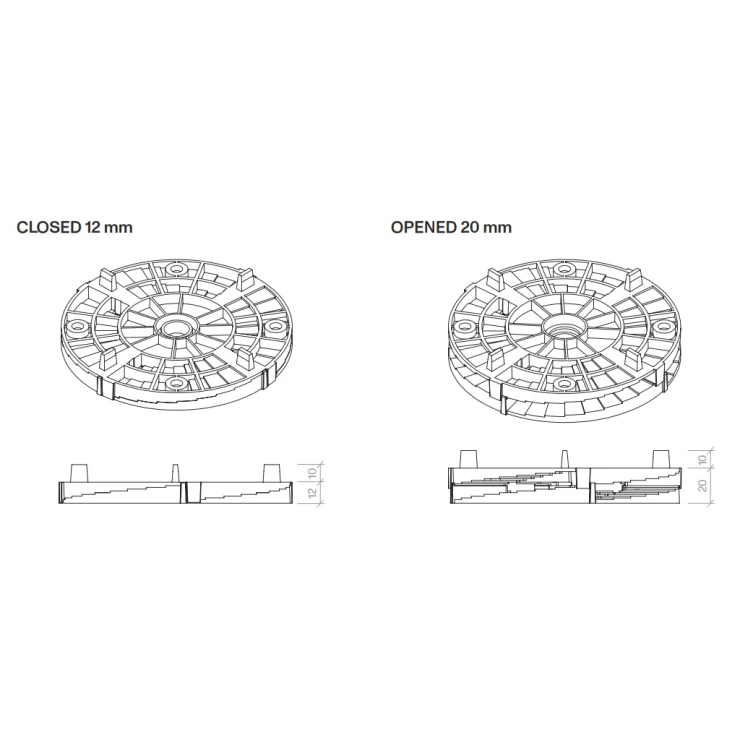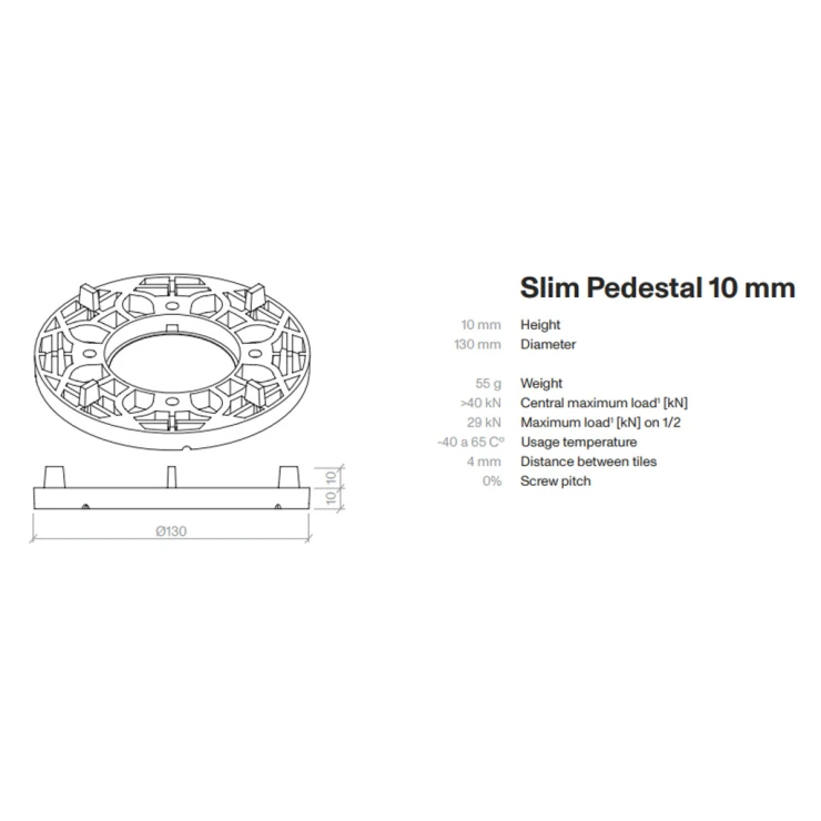 De passer sammen for at opnå ønsket højde. Den er kompatibel med faste støtte, beskyttelsesgummi og med standardudvalget af justerbare piedestalfødder. Den har 4 mm fugeflige.
