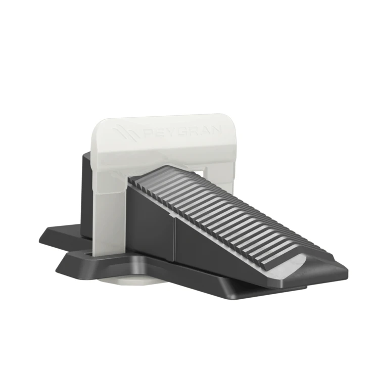 Kilebaser er udviklet for at udvide funktionaliteten i vores system og gøre det muligt at arbejde med tykkelser fra 3 til 5 mm. De kan anvendes ved tykkelser under 5 mm samt ved tykkelser fra 16 til 20 mm. Placer clipsene under kilen, så kilen centreres og får en større støtteflade. De er særligt vigtige ved vægbeklædning, da fliserne er meget sarte. Ved brug på værktøjets skala skal der lægges 4 mm til.