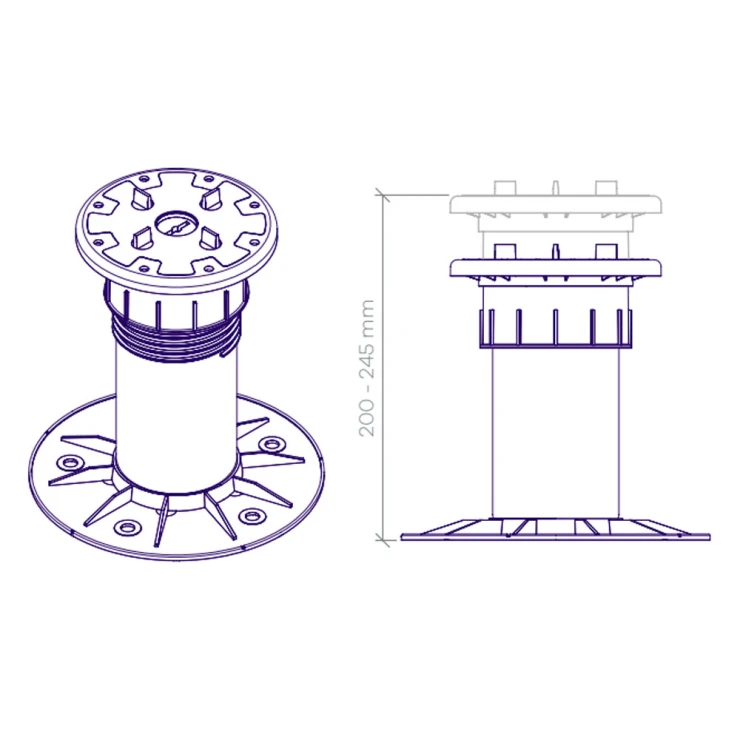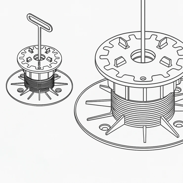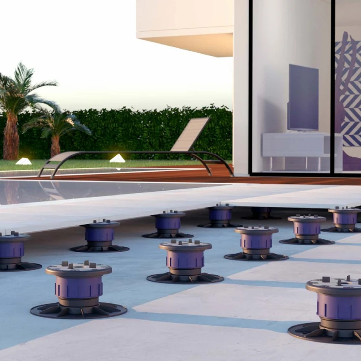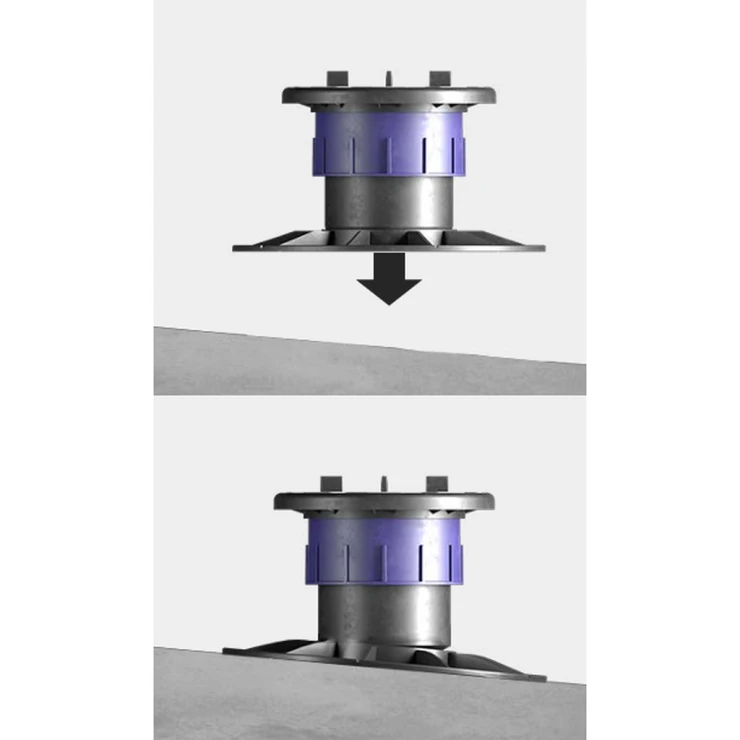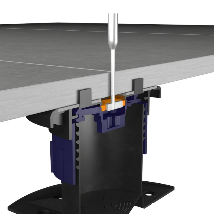 XSP Piedestalfødder er designet til at tilbyde et af de enkleste og mest pålidelige piedestalsystemer på markedet. Med en selvnivellerende base tilpasser de sig automatisk til gulvhældninger på op til 3 % eller 5 % (afhængigt af model), hvilket sikrer en stabil og helt plan overflade selv på ujævne underlag. Højdeintervallet strækker sig fra 21 til 245 mm, hvilket gør dem alsidige til en række forskellige projekter.