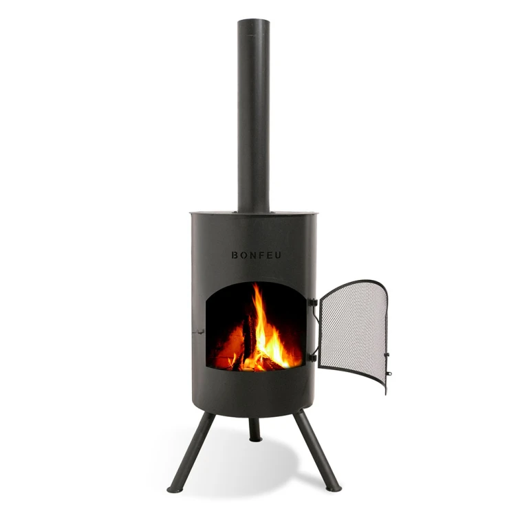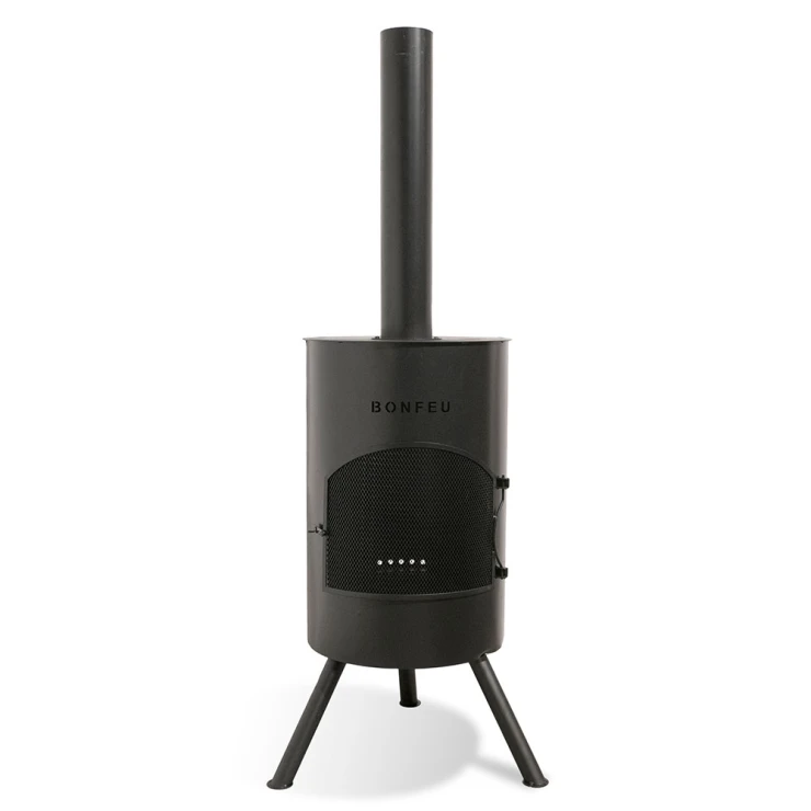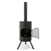 • Eldstaden har också en värmetålig beläggning för att skydda eldstaden. Formen och den höga rökröret på BonFeu säkerställer att röken transporteras bort. Du kommer inte bli besvärad av röken. Framsidan av BonTon är utrustad med ett avtagbart gnistskydd. Detta förhindrar att stockarna faller ur eldstaden samt att gnistor flyger omkring.