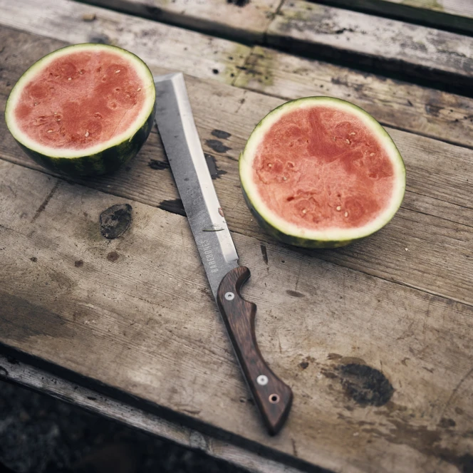 Materiale: Stål, Valnötshandtag, Kiselkarbid, Korn